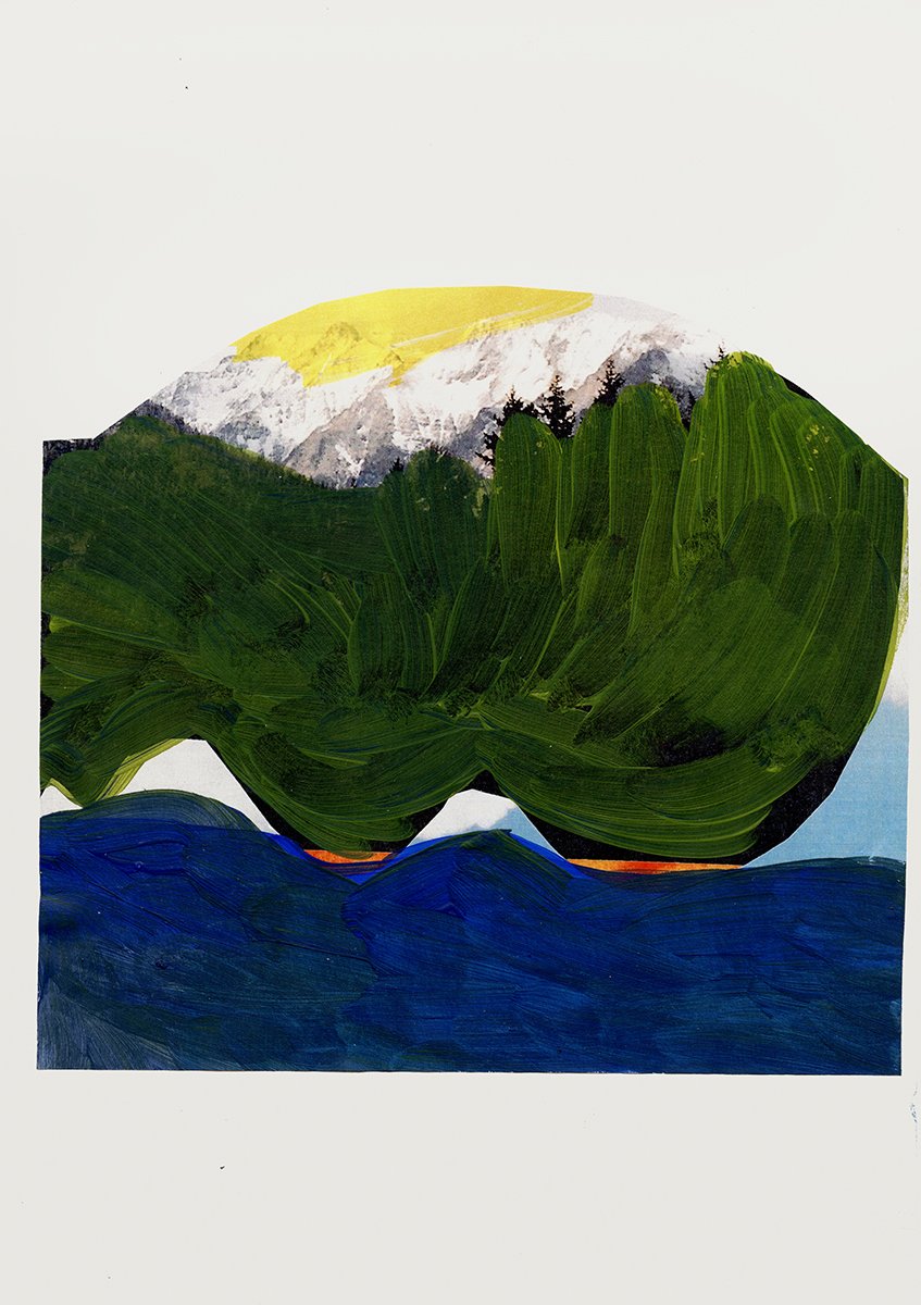 Übermalte Landschaft (2), 2005, Collage, Fotografie und Gouache auf Papier, 29,7 x 42 cm
