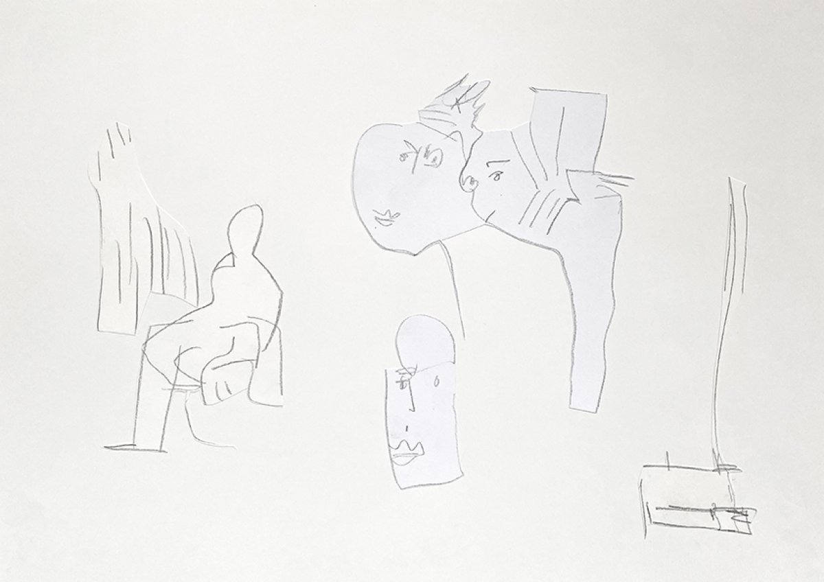 Collage /12.03.2025, 29,7 x 42 cm, Collage, Stift und Grafit auf Papier