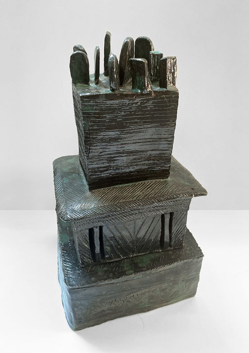 Turm (1), 1991, Ton, Rakubrand glasiert, 45 x 23 x 24 cm