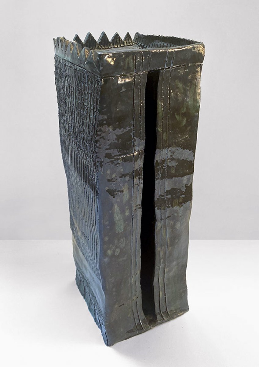 Turm (3), 1991, Ton, Rakubrand glasiert, 38 x 13 x 14 cm