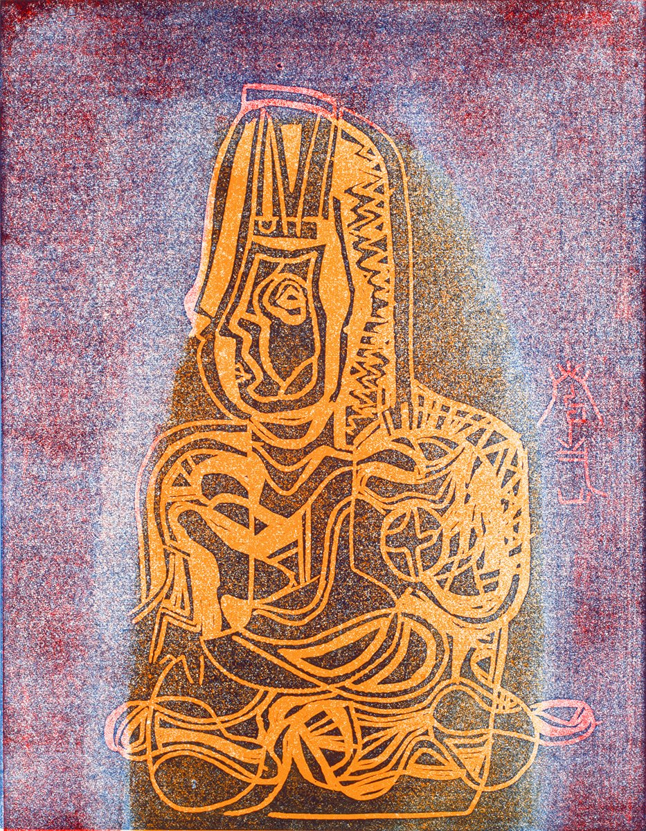 Mexikaner (orange), 1998, kolorierter Linoldruck auf Papier, Unikat, 70 x 54 cm
