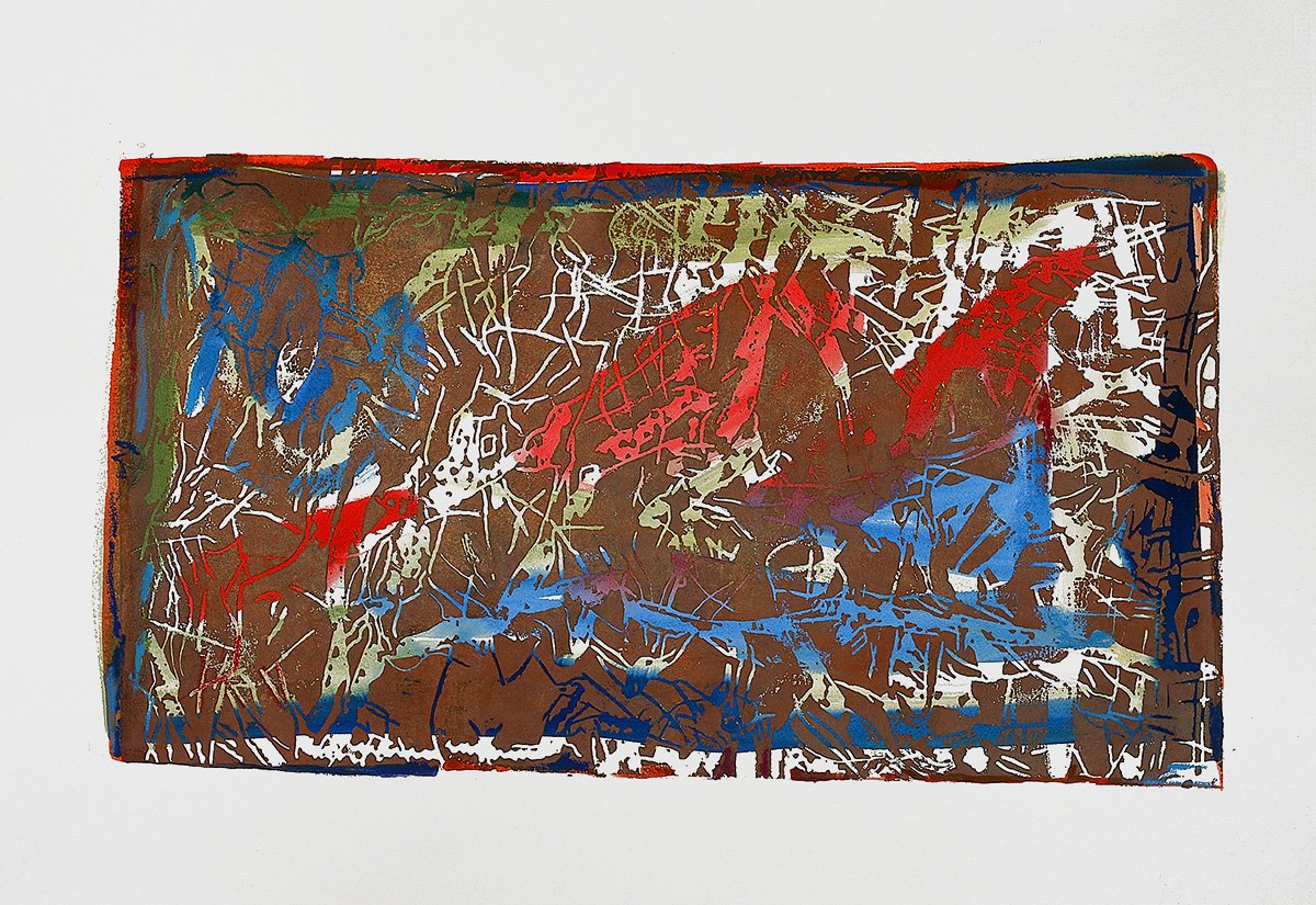 Licht und Schatten (9), 2000, kolorierter Linoldruck auf Papier, Unikat, 54 x 78 cm