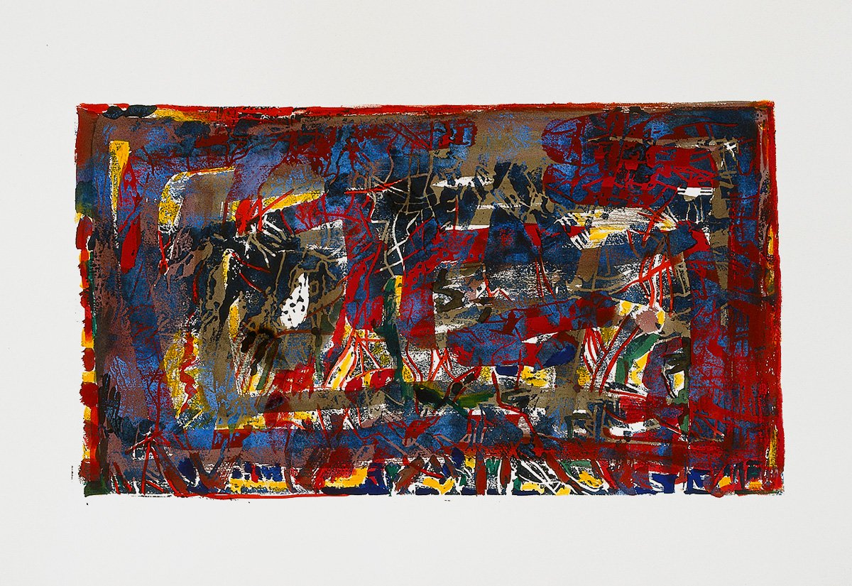 Licht und Schatten (2), 2000, kolorierter Linoldruck auf Papier, Unikat, 54 x 78 cm
