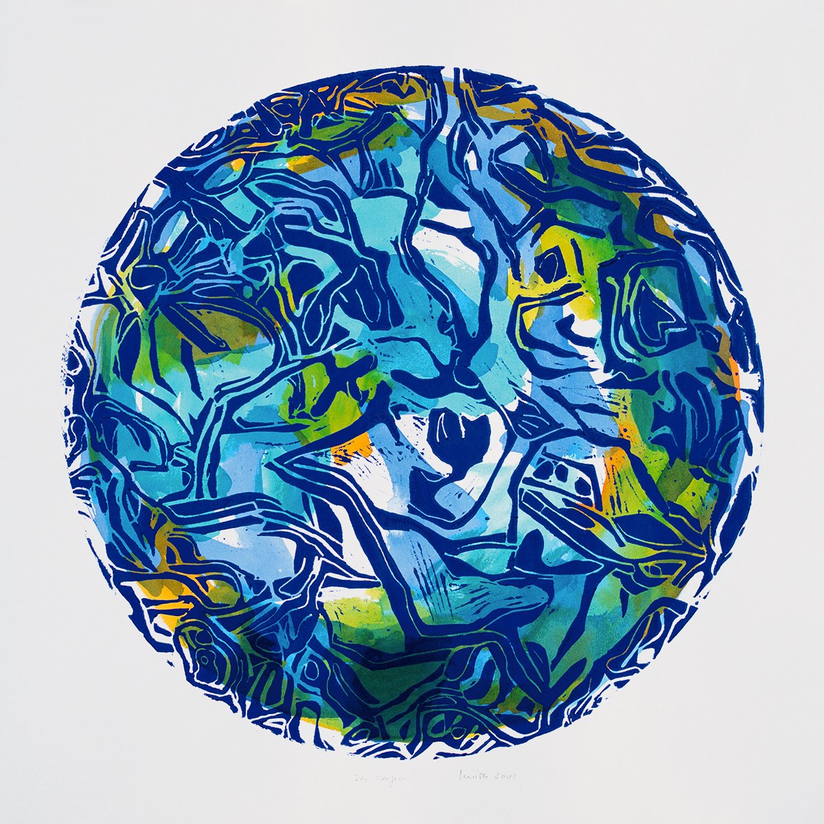 Der Reigen (Nr. 2), 2003, kolorierter Linoldruck auf Papier, Unikat, 78 x 78 cm