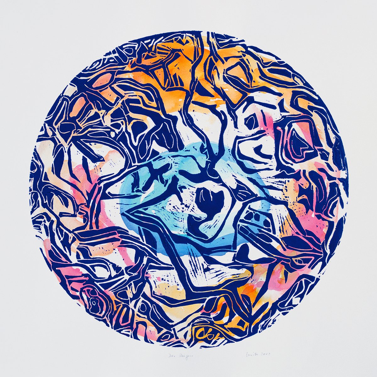 Der Reigen (Nr. 2b), 2003, kolorierter Linoldruck auf Papier, Unikat, 78 x 78 cm