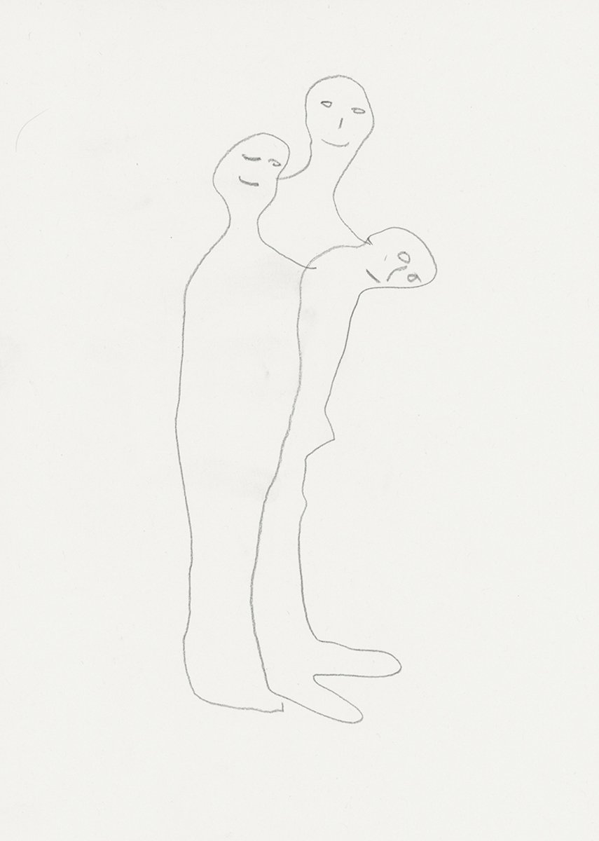 In drei Personen, 2021, Stift auf Papier, 21 x 29,7 cm