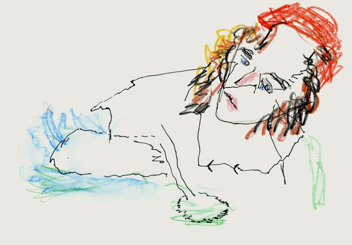 Situation (6), 2018, Ölkreide und Stift auf Papier, 21 x 29,7 cm