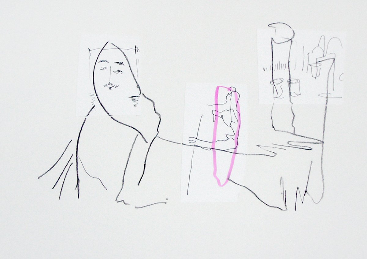 Verhältnisse (11), 2018, Collage, Kohle und Stift auf Papier, 29,7 x 42 cm