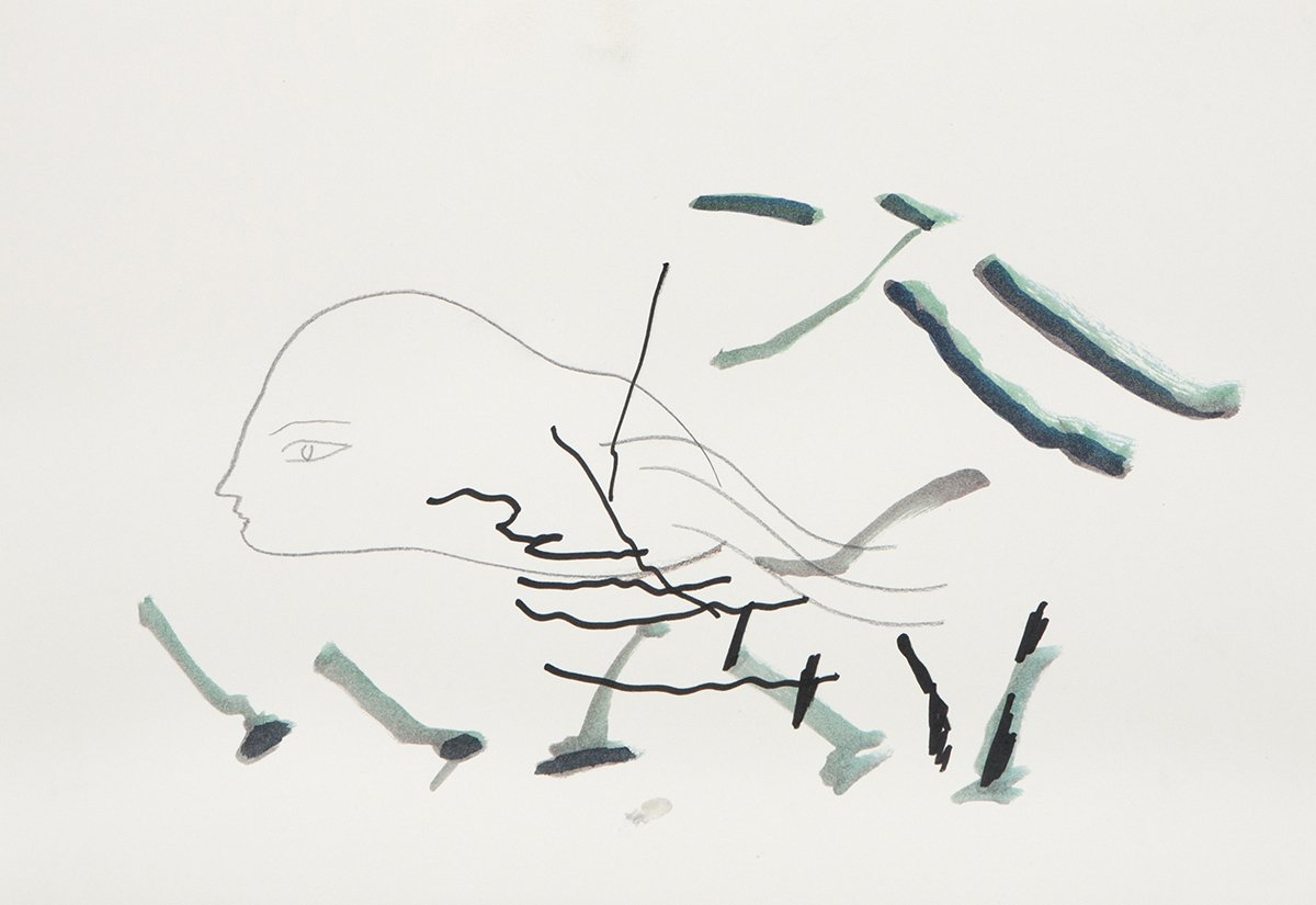Ohne Titel, 2002, Aquarell und Grafit auf Papier, 29,7 x 42 cm