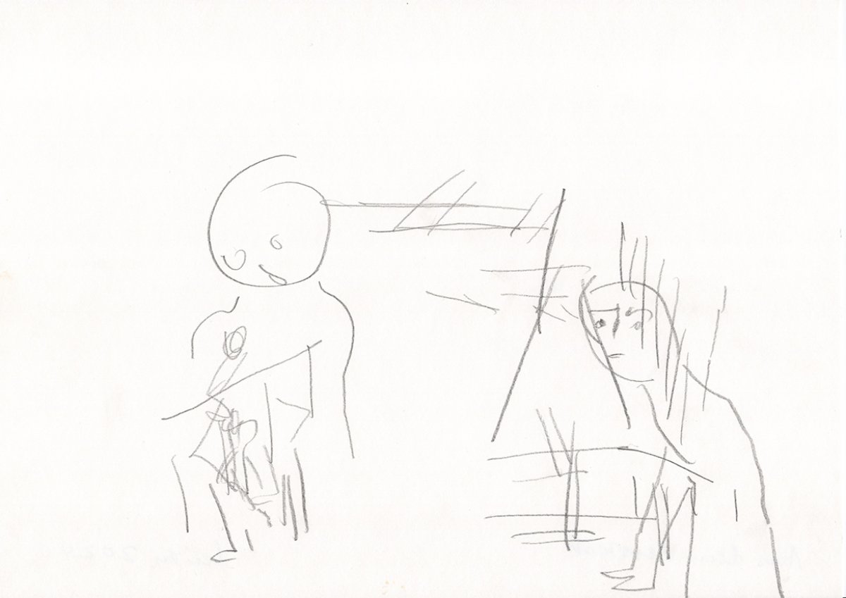 Aus dem Versteck, 2024, Grafit auf Papier, 21 x 29,7 cm