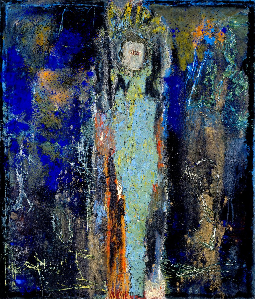 Im Zeichen der Iris, 1995, Öl und Pigment auf Leinwand, 140 x 120 cm
