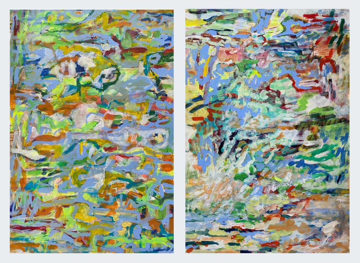Ohne Titel (Diptychon), 2025, Acryl auf Leinwand, je 150 x 100 cm